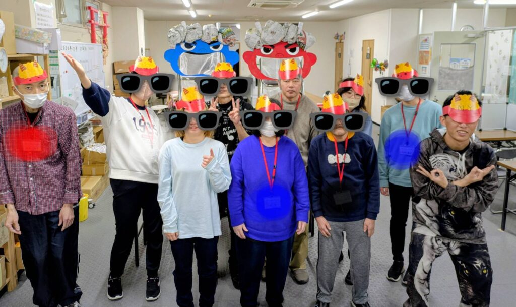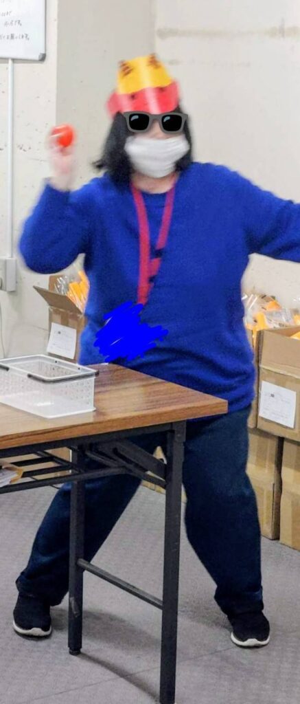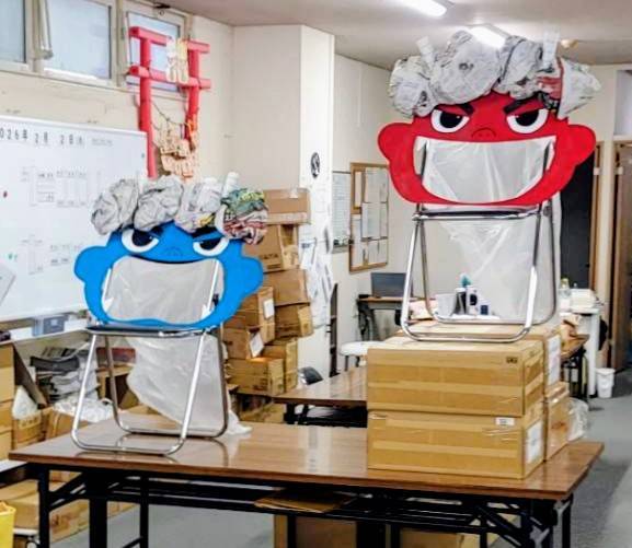 青鬼と赤鬼の口をくりぬいて、その中にボールを入れ点数を競いました🎵
